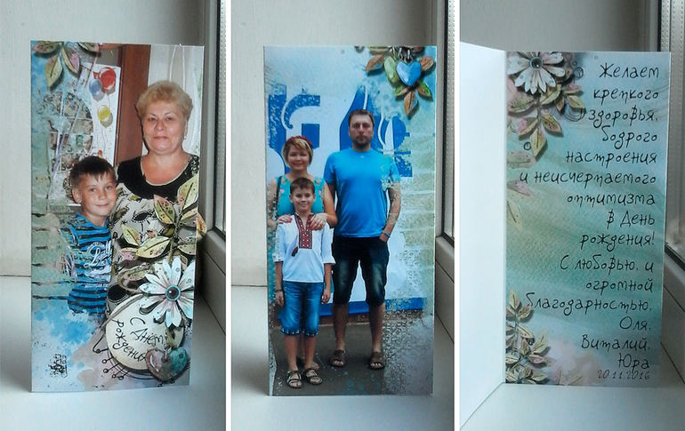 Макет открытки выглядит несколько перегруженным, но в готовом виде обычно видят стороны по отдельности.