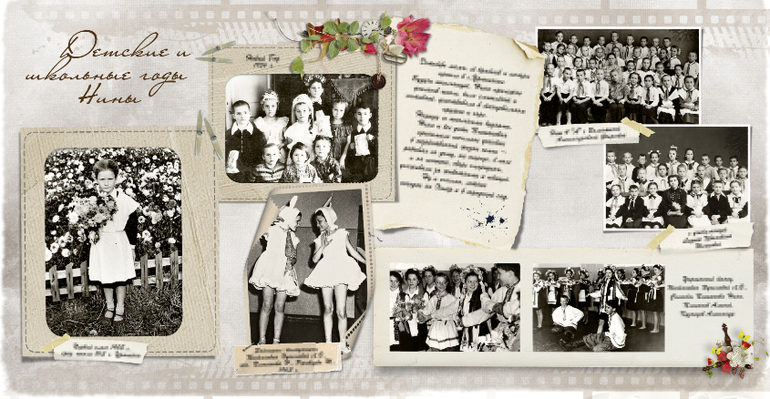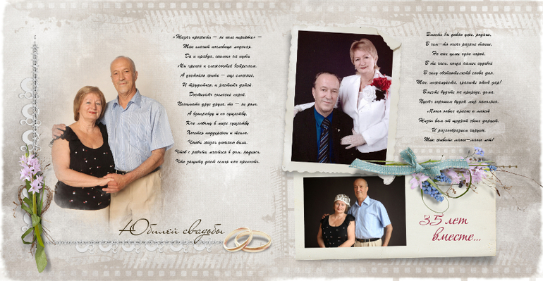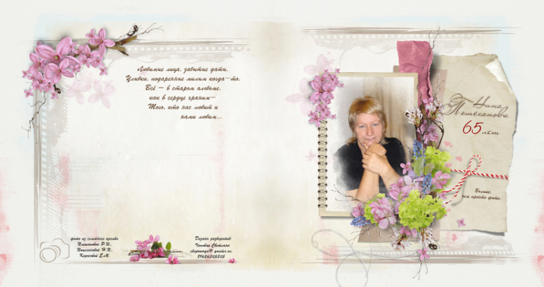 Законченные проекты (Скрап-альбомы, календари и пр.)Вот такую юбилейную книгу сделала заказчице для её мамы к 65-летию. Это история о жизненном пути мамы, жены, бабушки 3-х внуков и заслуженного учителя с огромным педагогическим стажем! Книга получилась большая на 32 разворота, размер 30х30см. Покажу часть разворотов (текст заретуширован по просьбе заказчицы)