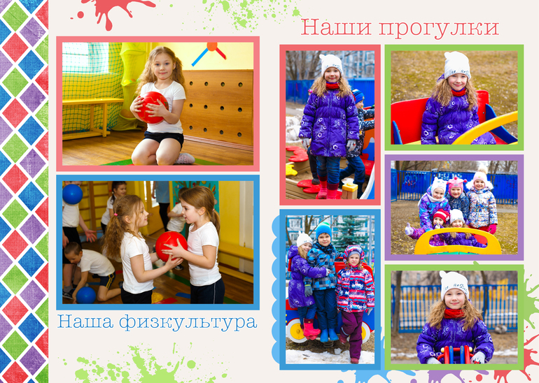4 разворот (фотосессия на уроке физкультуры и на прогулке):