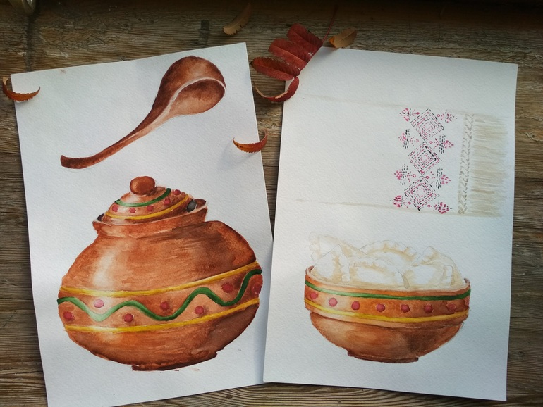 Смотрела на работу гадала что нарисовали, открыла - посуду и не догадаться что набор не покупной)) здорово