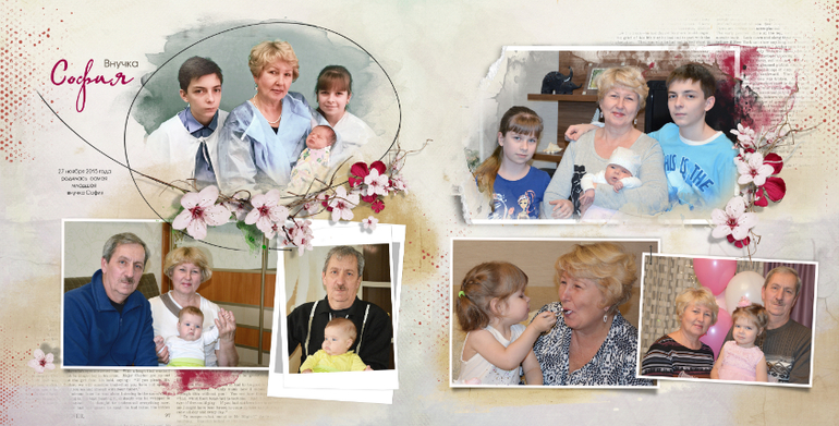 очень понравились развороты, да был похожий проект у Ангелины на сайте фотокниги для души. но вот обложка не знаю, что-то другое хочется:для меня это самое трудное,уже делаю после разворотов.