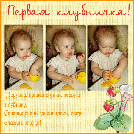 Снежана, обалденная страничка, но... я бы посоветывала оставить больше "воздуха" по бокам странички (т.е.. сделать фотографии меньше), соответственно, шрифт текста тоже уменьшить.