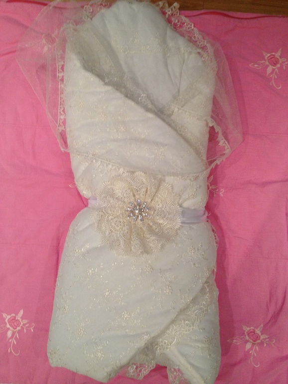 Очень красивый комплект на выписку, шикарное одеяло с вуалью и брошью, 2 теплые трикотажные пеленки, трикотажная распашонка, велюровый костюмчик: штанишки, кофточка, шапочка! В подарок теплая шапка + почта