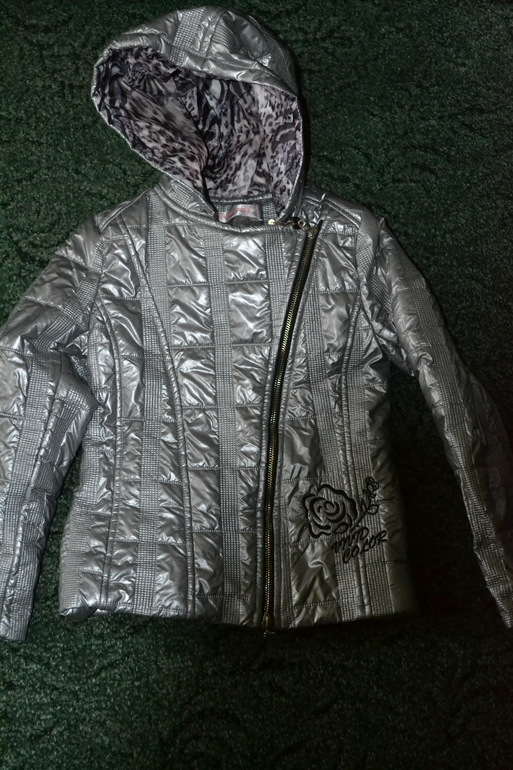 не бойтесь светлого и яркого цвета, он отлично стирается, быстро сохнет, у нас не было никаких проблем в носке из-за маркости цвета))состояние отличное, куртка с поясом (на фото нет его)