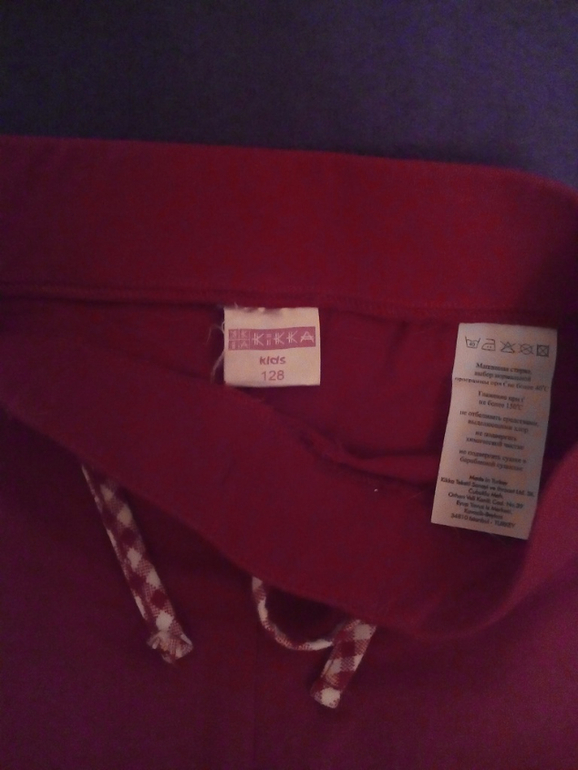 1. Хлопковые капри на 5-6 лет. 100% хлопок. Если подвернуть подвороты - получаются короткие штанишки. Хорошо подойдет для физкультуры. Рост указан - 128, но маломерки. Цена - 200 рублей.