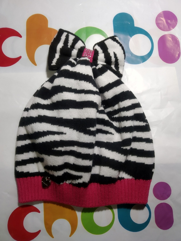 Шапочка эксклюзивного дизайна связана из мягкой хлопковой пряжи. Модель украшают контрастные полоски и объемный декоративный бант с принтом "зебра" и стразами.100% хлопок новая, но без бирки чоби CHOBI-1400р. г.Саранск почта 180р.
