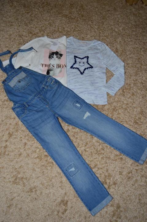 Новый джинсовый комбинезон-122-128 большемерит до роста 134, и два новых лонга 1500р. г.Саранск почта