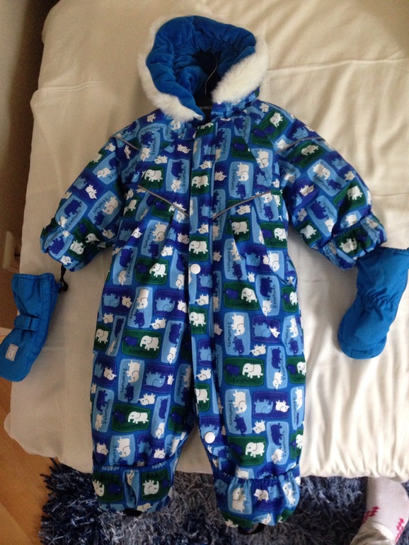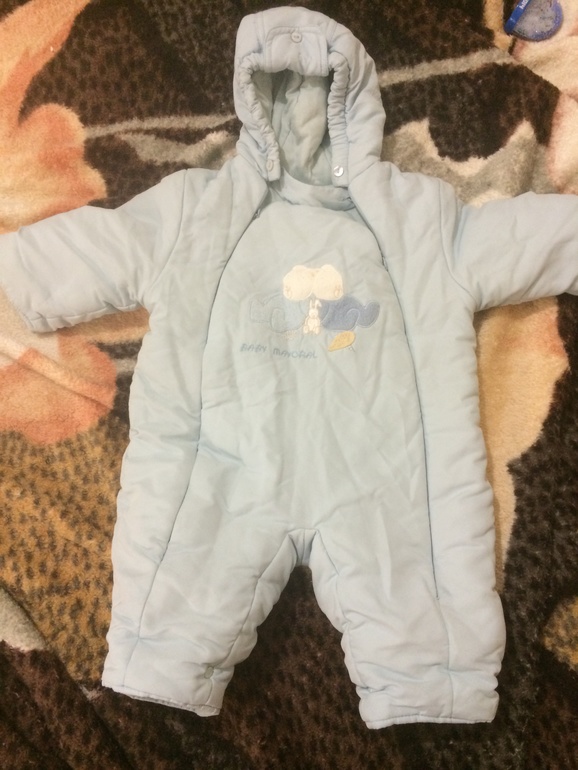 На 6-12 мес. Б/у, но не заношен, без пятен. Есть небольшой деффект - молния пластмассовая и может расходиться (на фото видно). Ее легко можно поменять, а костюм очень классный, малыш не замерзнет