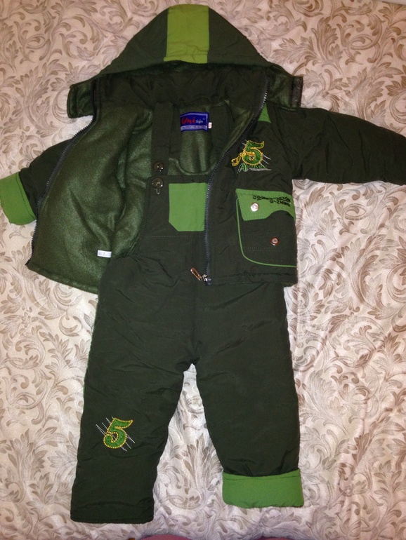 В хорошем состоянии костюм на мальчика.На холодную осень.Манжеты куртки и комбинезона подворачиваются,когда ребенок подрастет-удлиняются.Флисовая подкладка,утеплитель похож на синтепон.