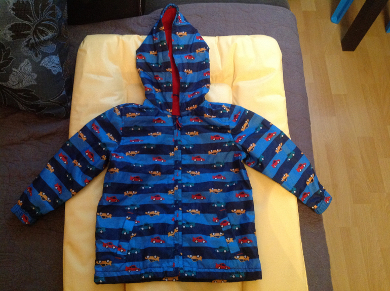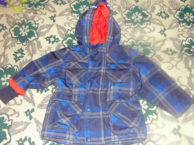 Рост на этикетке 86 (12-18М), капюшон отстегивается. Рукава: по внешнему шву - 31 см., по внутреннему - 23 см.), ширина курточки - 36 см., длина - 43 см. Носили от +10 и выше.