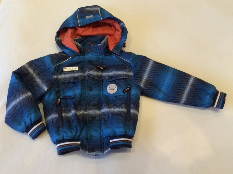 Куртка Mothercare маркировка 110 большемерит на мой взгляд (реально на 116см) теплая на синтепоне, внутри и на капюшоне-флис.Длина по спине-47см, длина рукава 40см(есть внутренняя резинка на рукаве). Почти не носили.Не такая яркая как на 2 фото.
