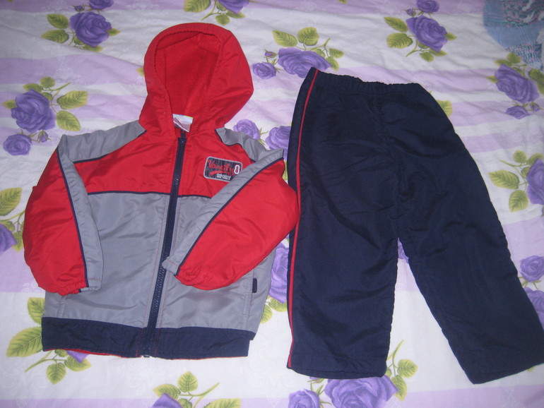 Мальчик 2-3 года(92-98 см.)Брюки на резинке + курточка с капюшоном. Заказывала в Америке. Внутри утеплитель, на теплую осень. Курточку дочка надевала 1 раз (читай новая), штанишки надевали раз 10 (состояние отличное). Маркировка 3 года, вполне можно с 2 носить. 500 руб. М. Чертановская, центр по договоренности.
