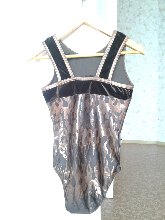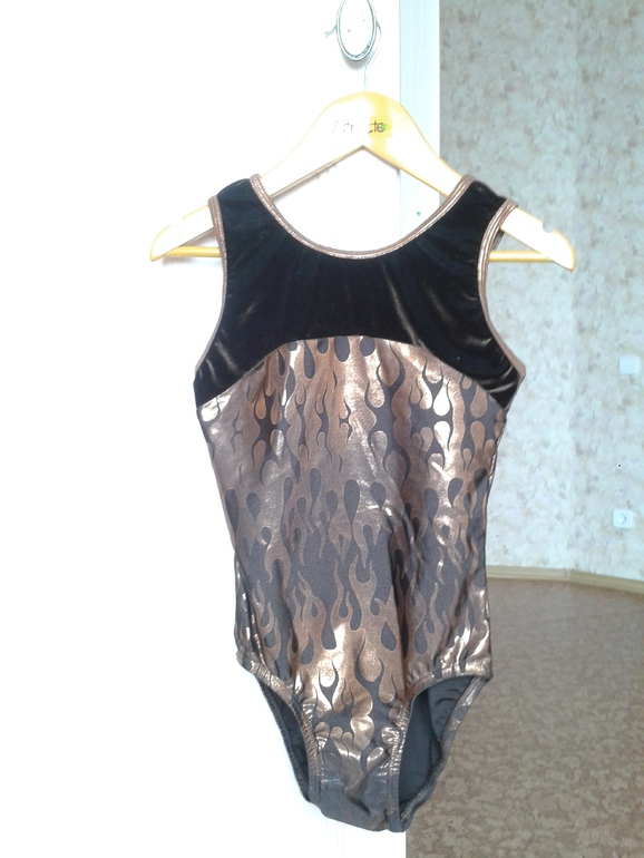 2. Купальник гимнастический, рост примерно 140 см. Цвет реальный гораздо ярче, чем на фото. Верхняя однотонная часть выполнена из бархата. Цена 500 руб.![]()