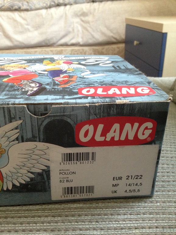 Обувь для мальчикаФирма olang. Отлично одеваются деткам даже с высоким подъемом. Спереди молния. Теплые. Размер указан 21-22. Но можно если с носком то и в19-20 размер носить. Покупали за 2790, отдам за 1000