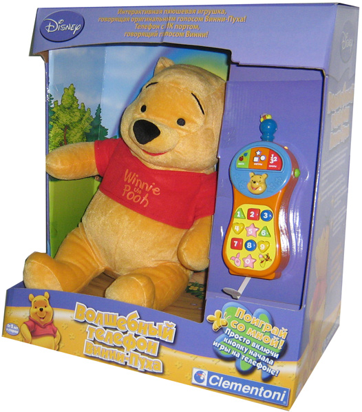 Игрушка включает в себя обучающий телефон и мягкую озвученную фигурку забавного мишки Винни Пуха. Чтобы начать игровой процесс, нужно включить телефон, иВинни Пух начнет подавать указания.