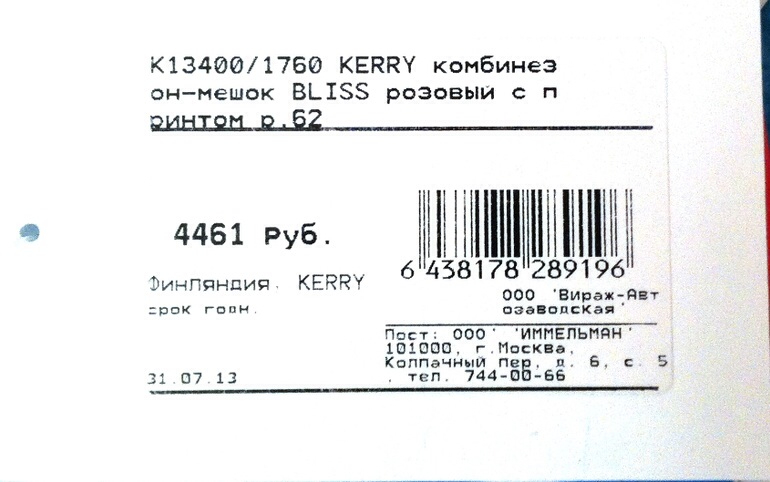 KERRY комбинезон-мешок BLISS розовый с принтом 62 (+6). 3000р