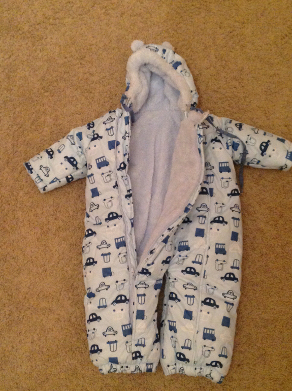 Мальчик 6-12 мес.(74-80см.)Очаровательный комбинезон рассчитан на холодную осень и теплую зиму. Размер указан 3-6 месяца, можно спокойно носить до года ( до 74 см).