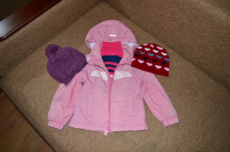 Девочка 18-24 мес(86-92 см.)Размер 2 года 92см, реально мы носили с 1,5 почти до трех лет. Очень удобная и практичная- ребенок в ней чувствует себя отлично. Водолазку GD отдам в подарок, к ветровке есть берет НМ, на х\б подкладе и новая шапочка, с этикеткой- за все 750р.
