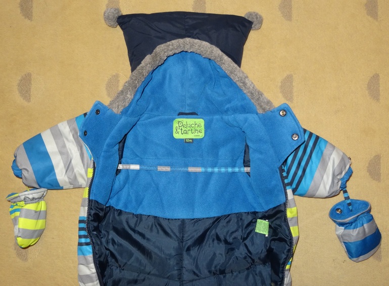 Красивый теплый комбинезон Peluche & Tartine, размер (маркировка) 12М. Состояние нового, так как когда его носили ездили только в коляске, не ходили еще.