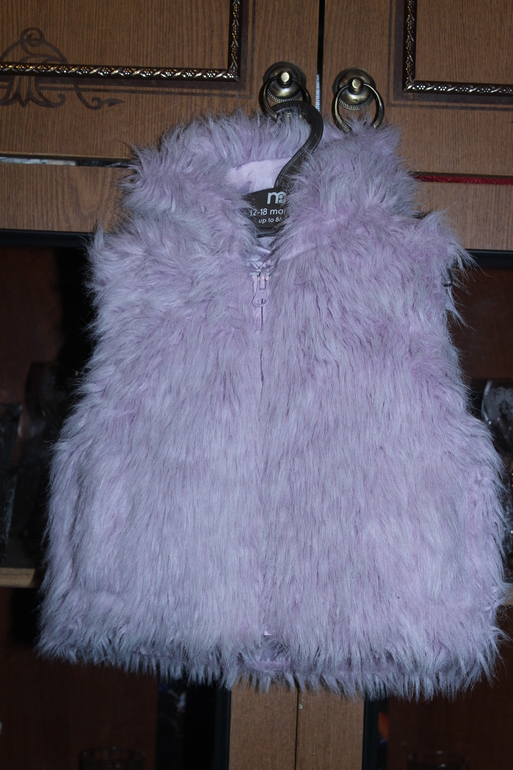Девочка 6-12 мес.(74-80см.)Продам красивый нежно сиреневый меховой жилет для девочки! Смотрится на ребенке отлично стильно и модно! При желании могу измерить. Застегивается на молнию. Имеет капюшон и кармашки.