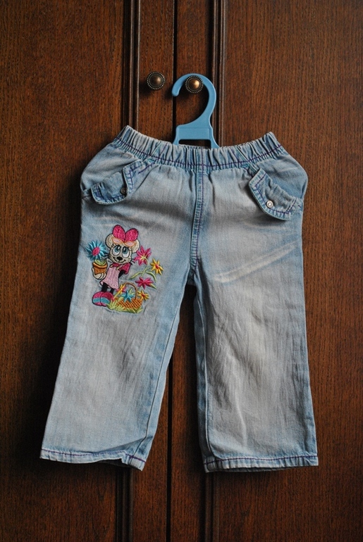 Тонкие голубые джинсы с вышивкой р.86 (длина, как у коричневых) - 100р