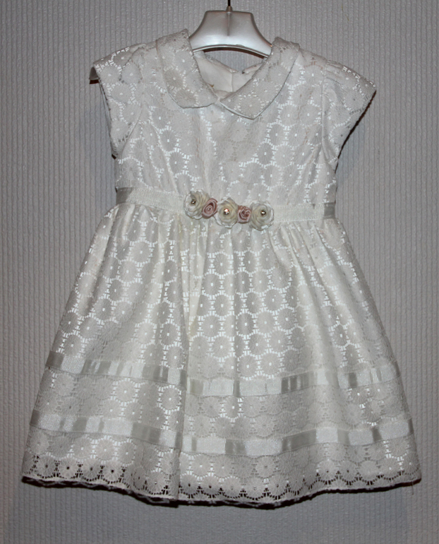 Девочка 18-24 мес(86-92 см.)Одевали один раз, состояние отличное. Платье молочного цвета, маркировка 24 м, на самом деле маломерка. Пинетки нежно-розовые 20-21 р-р.За все прошу 700 руб. Почта.