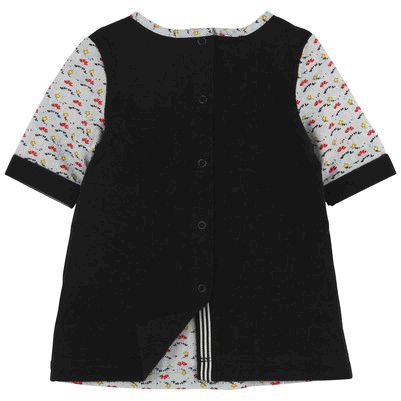 Состав: перед платья - поплин 100% хлопок (фото 1), сзади - джерси 100% хлопок (фото 2), рукав 3/4, застегивается сзади на кнопки. Новое платье, с этикеткой, на которой есть цена -(67.99 $) Нам, к сожалению, не подошло по размеру.