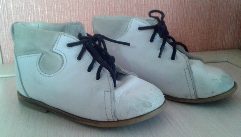 Ботиночки белая кожа, привезли в подарок из Швейцарии, очень качественные,бу, после химчистки, ободраны мысы, легко покрыть белой краской, подошва из качественного специального материала,типа каучука, очень мягкие, сразу чувствуется, что не "наши", хотя мы любим русскую обувь, р. 23-500р