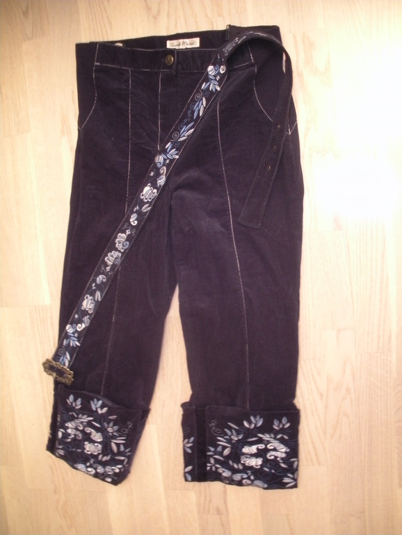 Бриджи темно-синего цвета с поясом р 44-46 вельветовые. Снизу украшены вышивкой. Цена 200 руб.