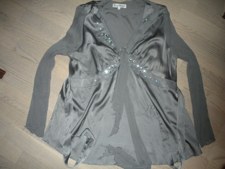 Туника р. 46-48 состав 75% шелк, 22% вискоза, 3% эластан. Украшена кристалами. Цена 200 руб.