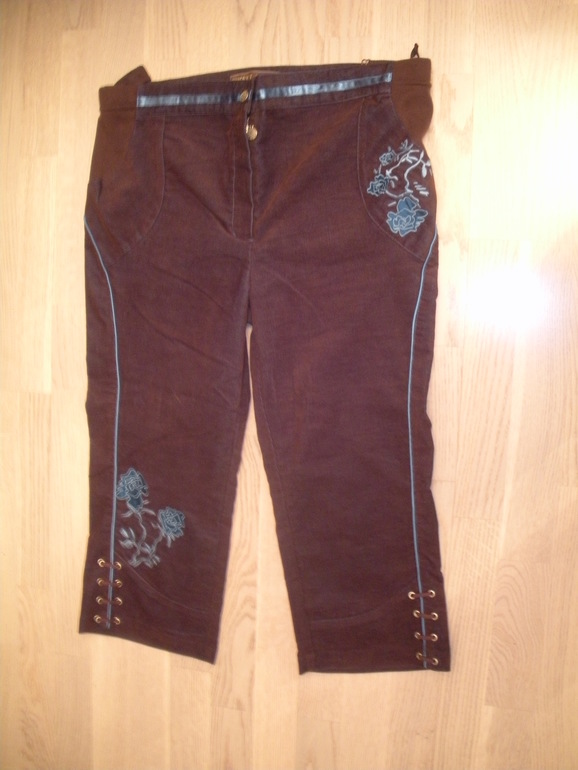 Бриджи коричневого цвета р 46-48. Украшены вышивкой и тесьмой. Цена 200 руб.