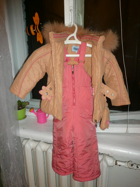Девочка 2-3 года(92-98 см.)Очень теплый, с оригинальной сумочкой. Носили один сезон, после одного ребенка