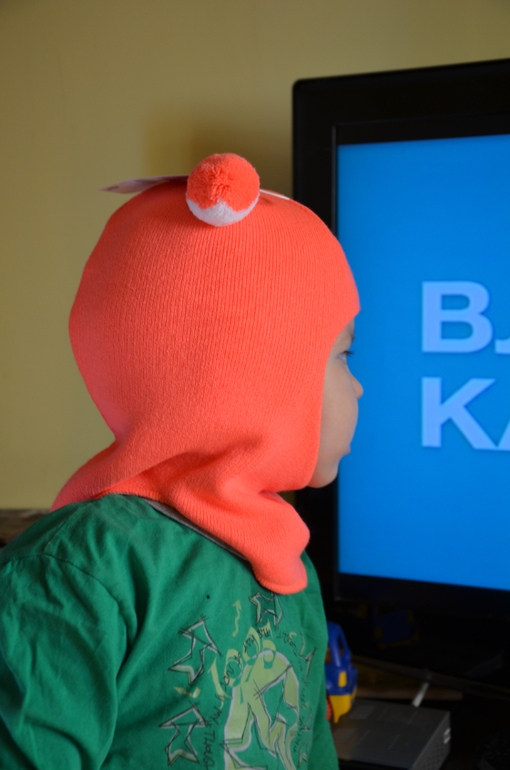 36.Шлем Котик, неоново-оранжевый, 50% шерсти, утеплен синтепоном, 2 г, новый-700 руб.