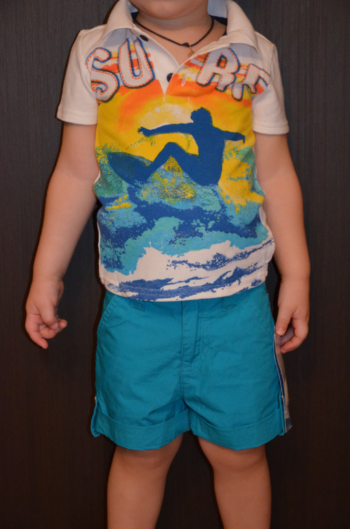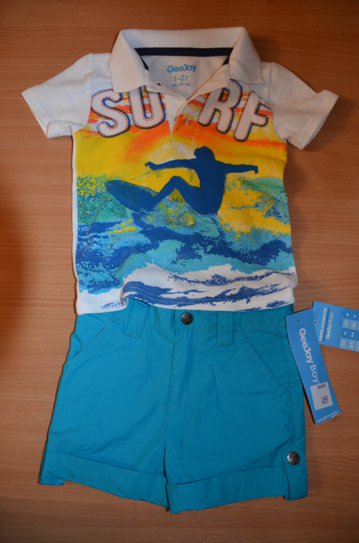 87. Футболка-поло б/у один раз и шортики новые GJ,на шортах есть утяжки-на сыне не утягивала, кнопки можно открепить и раскатать отворот 800 руб. комплект