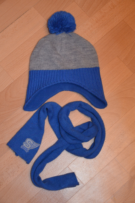 К комплекту могу предложить шлем Скикки SKIKI полосатый с фото ниже- 100% шерсть, ветрозащитные вставки на ушках и лбу (нашла небольшую дырочку) 400 руб.