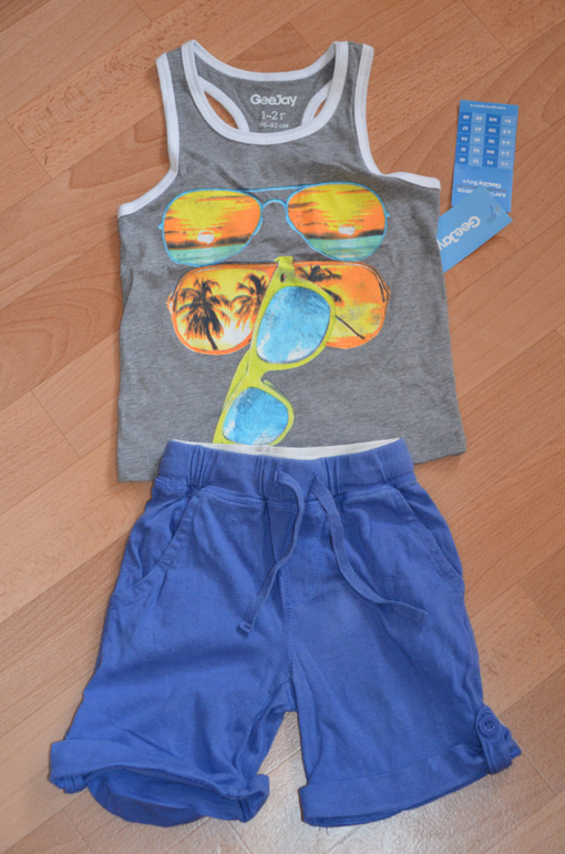 81. Майка новая GJ, 2г., шортики FOX, 12-18 мес (носили в 2г.)+ майка дисней в подарок (на ней желтое пятно, но в глаза не бросается совершенно+ кепка-600 руб.
