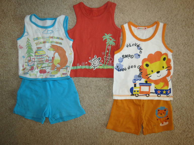 Летние костюмчики на 1 год и майка, за все 300 руб