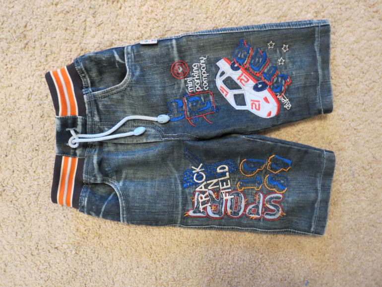 Джинсы размер 80-86. На поясе с утяжкой, внизу можно подвернуть. Цена: 200 руб