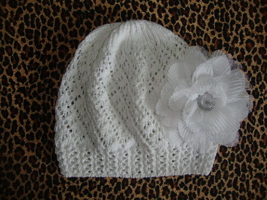 Ажурная, хлопковая шапочка. Практически новая, одели 1-2 раза.Сядет хорошо на ОГ 47-48.Цена 250р.