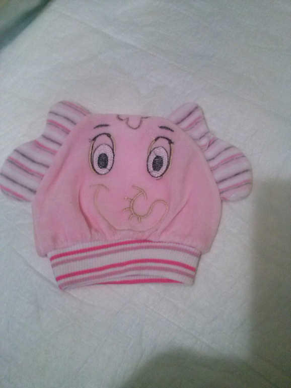 26) белая новая шапочка(80р),месяца но три,розовая новая месяца на три(70р)