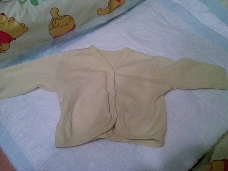 11) кофточка жёлтая, на клепосках,с длинным рукавом (62-68рр) б/у четыре раза (70р)