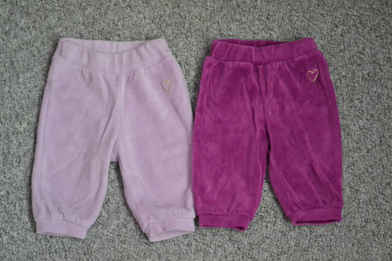 5. Двое велюровых штанишек с вышитыми сердечками. 3-6 мес по 150 р