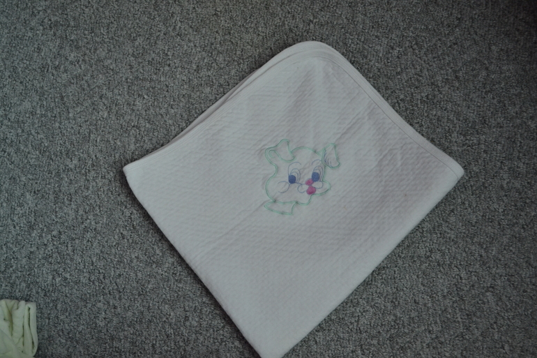 22. Небольшой хлопковый двухслойный плед с вышивкой. Использовали для летней выписки. 300р