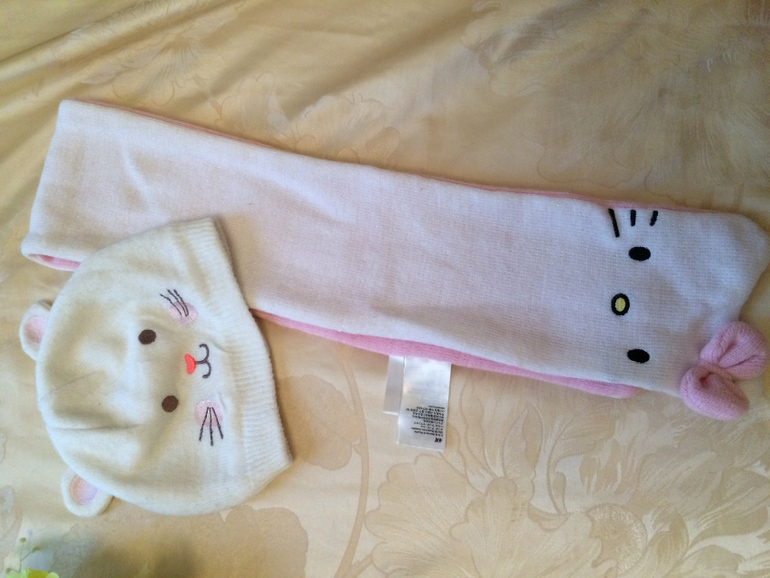 . шапка + шарф. Состояние шарфа отличное, одевалась изредка. Шапку носили активно. Цена 200 руб.