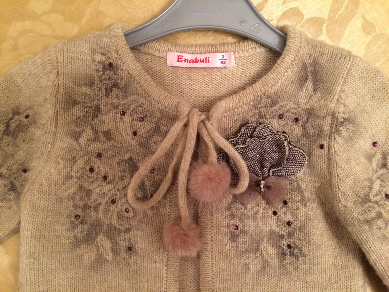 Кофточка Enabuli. (Турция) впереди на завязке с бубенчиками из натурального меха. Очень оригинально смотрится на ребенке. Состояние нового. Одевалась в помещении 2 раза. На рост 98 см. Це 500р