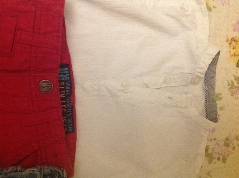 Джинсы красные на год полтора написано но в реале на 86