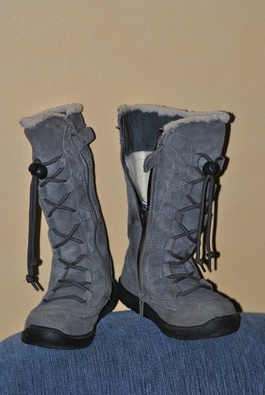 Замша с натуральным мехом. Цвет серый. Застёгиваются на молнию. Состояние отличное. Размер 27:
