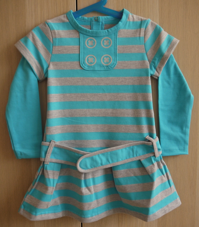 Серо-голубое платье-туника, поясок на липучке р.104 - 700руб.