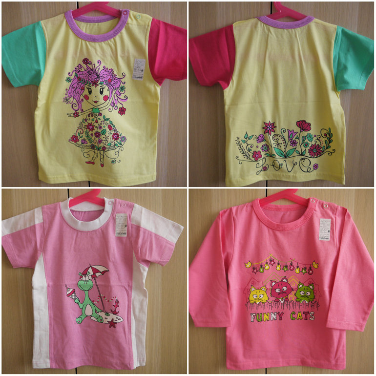 Футболки: розовая р.92 - 250руб, красная р.92 - 250руб, желтая р.98 - 350руб, с удлин.рукавом р.98 - 350руб