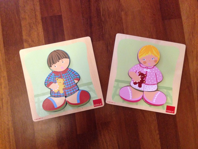 1) ПРОДАНО деревянные двухсторонние пазлы "Мальчик" и "Девочка" (возраст 12мес+) по 400р за штуку